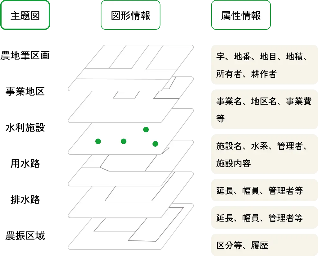 - 市町村【あるいは地区】ごとに層状(レイヤー)に管理する