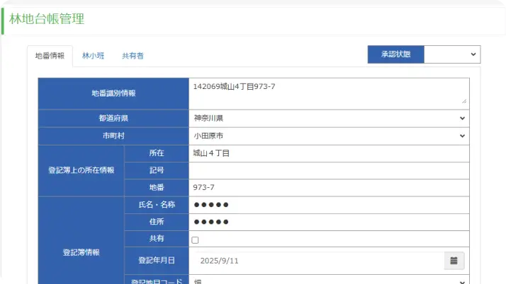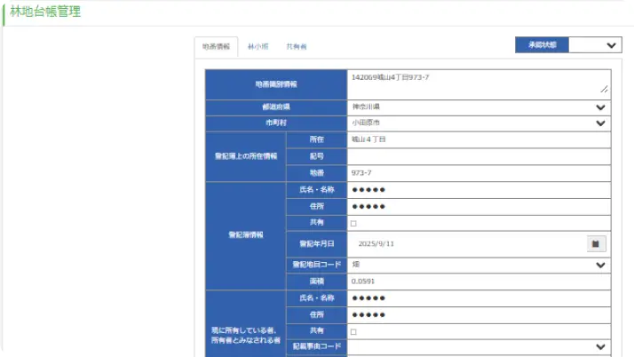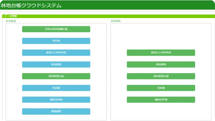 林地台帳及び地図整備マニュアル等関係通知に基づいたシステムとなっており、林地台帳と林地台帳地図の一元管理が可能です。